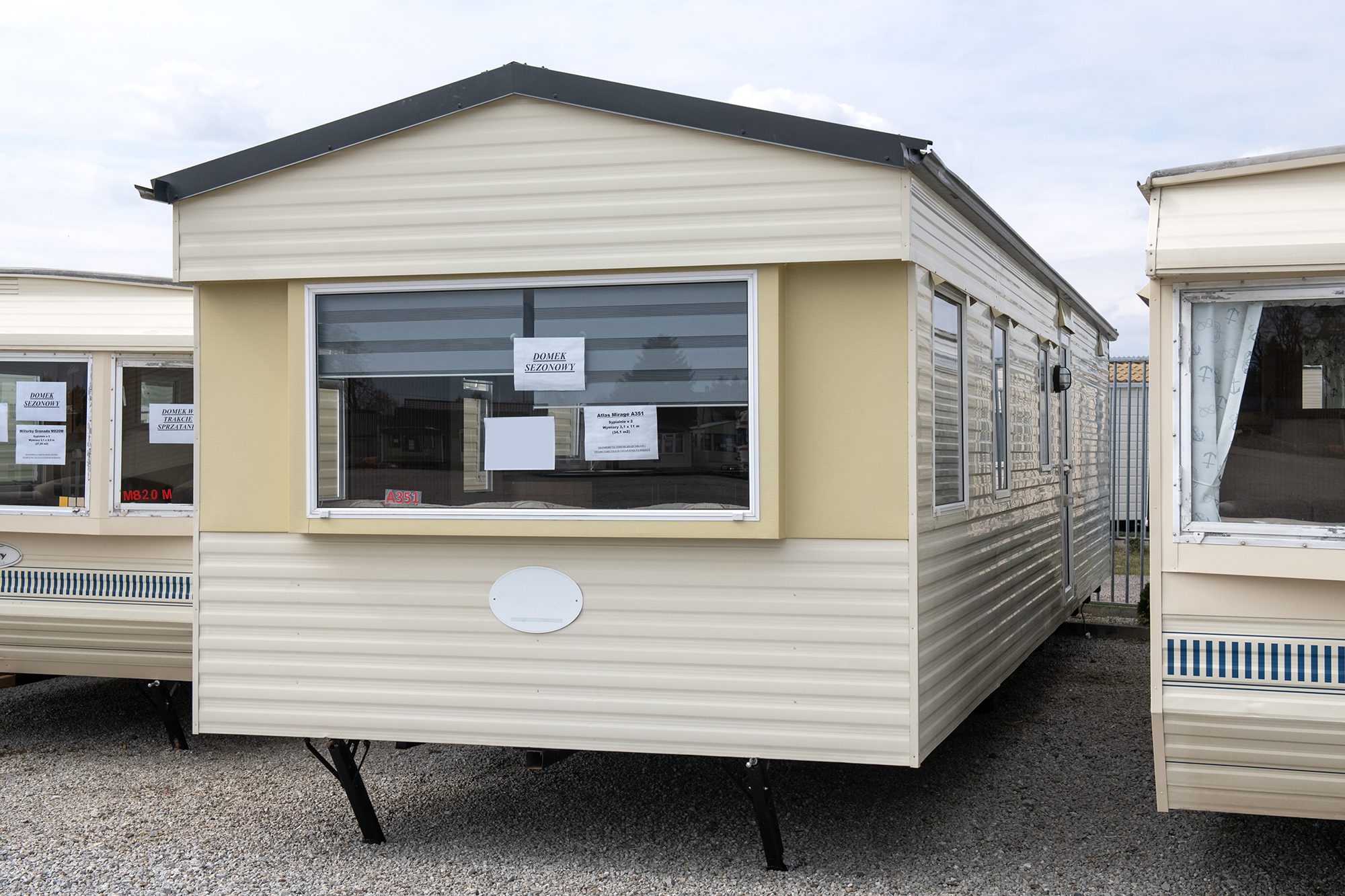 🏡 Komfortowy i funkcjonalny domek holenderski sezonowy Atlas Mirage o wymiarach 11 × 3,1 m, idealny jako miejsce wypoczynku.