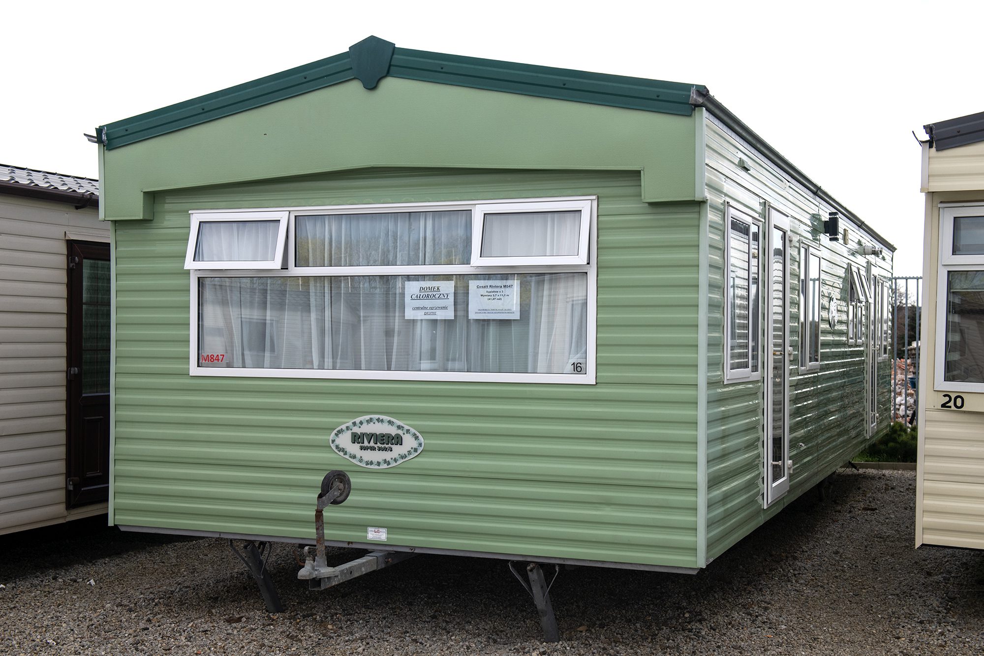 🏡 Komfortowy i przestronny domek holenderski całoroczny Cosalt Riviera o wymiarach 11,1 × 3,7 m, idealny do użytkowania przez cały rok.